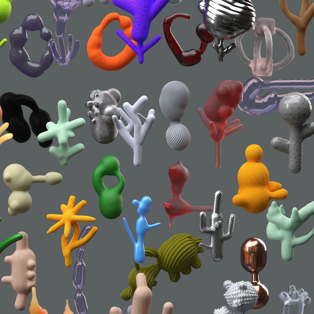 This pack contains 54 abstract toys and plants. They are UV-Unwrapped, low-poly, quad based and ready for animation. Especially optimized for soft body simulations (for the old system, now you can use way more polygons). For more images, you can also check the other products.